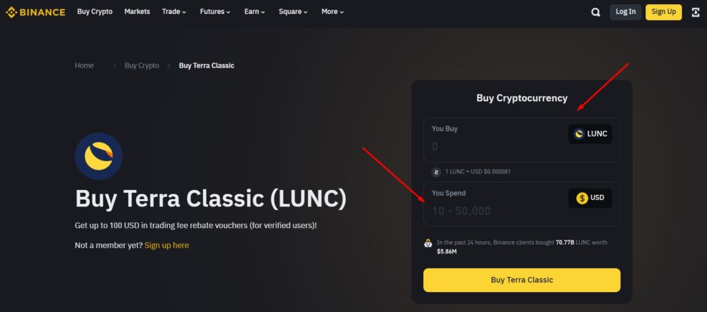Here is how you should buy LUNC (Terra Luna Classic) on Binance: