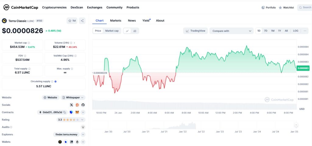 Terra Classic Luna News – Current Market Performance (As of January 24, 2025)
