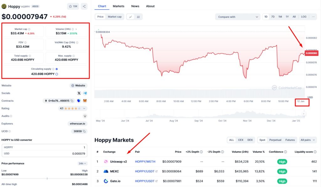Hoppy the Frog Coin – Statistics (As of January 12, 2025)