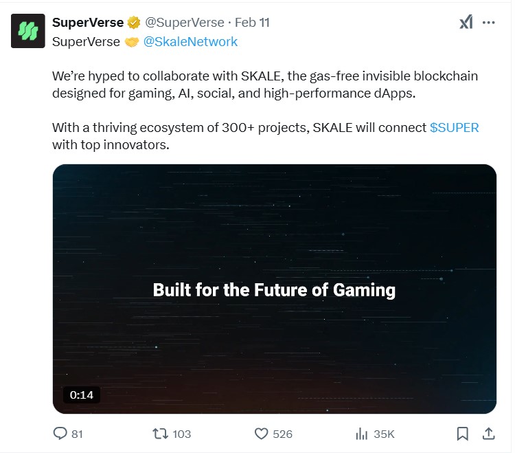 • During Phase III they expect the transformation of $SUPER into a separate blockchain to become the leading gaming platform for Web3 with major industry members;