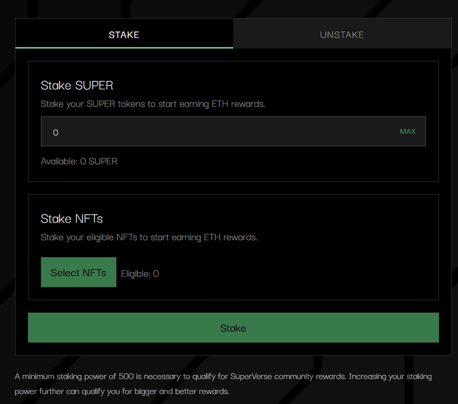Additionally, the staking mechanism uses the flexible emission model with smart and fair distribution. The release of rewards in ETH happens progressively within certain time periods while regular ETH distribution is done through the staking contract to maintain the stability of $SUPER token’s value.