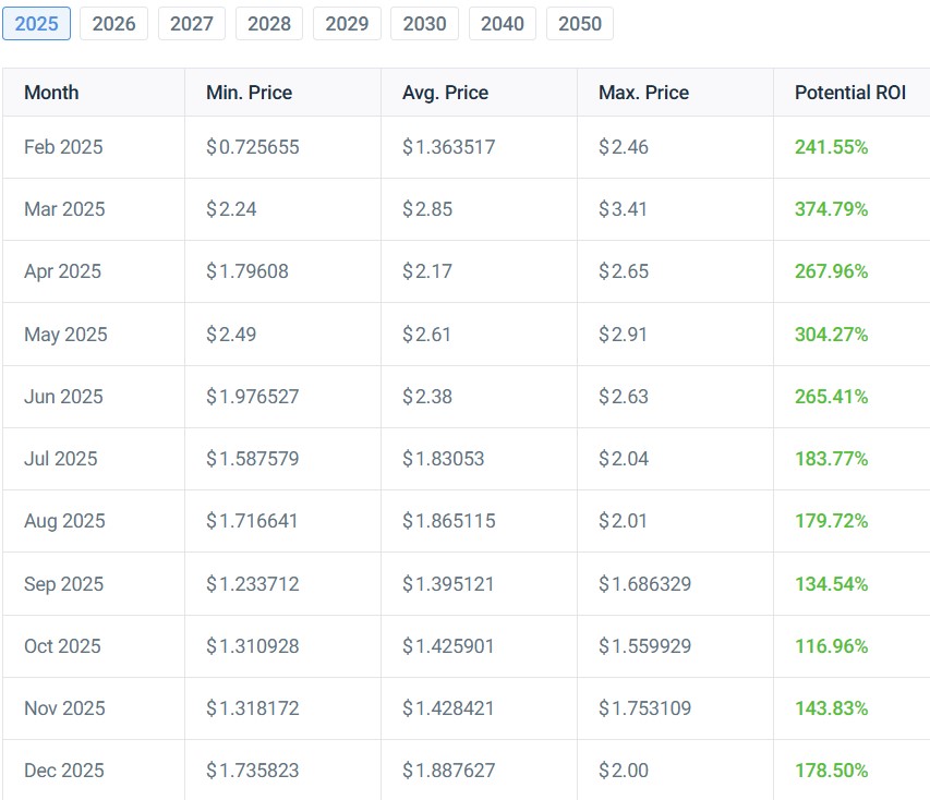 Our unbiased SuperVerse price prediction for 2025 suggests that during April-May the SuperVerse price may continue rising to achieve the possible values of $2.65 in April and $2.61 in May. The positive price trajectory may continue in the future so June’s market average stands at $2.38 while the last month of 2025 could reach $1.89. The early investors in 2025 expect exceptional returns that may reach 179% or higher.