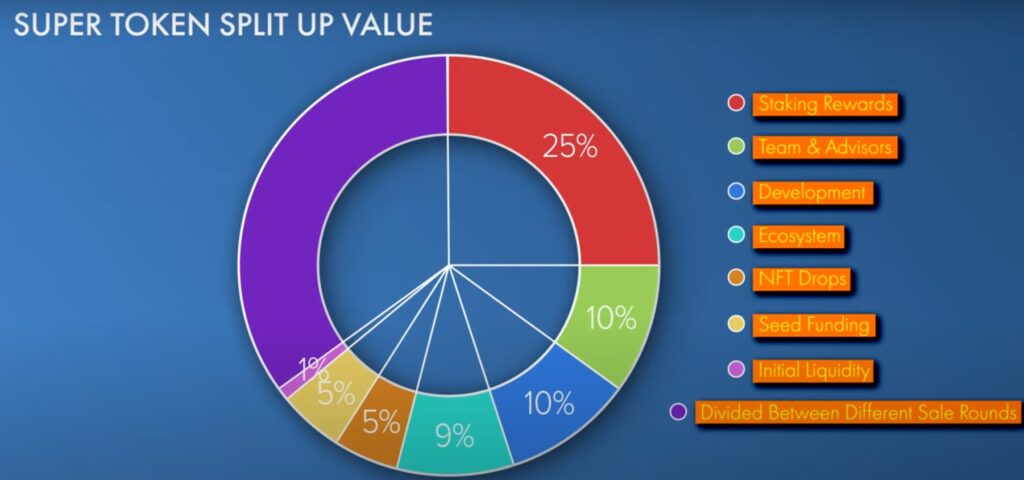 The team announced how the total token supply of 1 billion $SUPER tokens will be spread among the team’s members and participants: