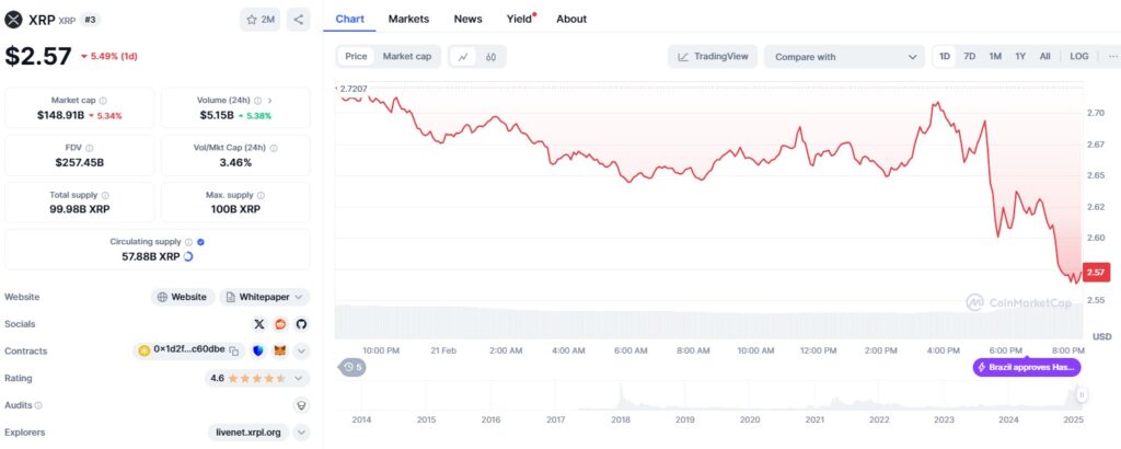 On February 12, 2025, the XRP currency rose up by 2.52%, finishing at a price point of $ 2.47, and this was consistent with an overall market increase of around 2.62%. Yet still, XRP is not matching its peak value, which was $3.39 in 2018, as the situation about SEC’s appeal continues to be unclear even now.
