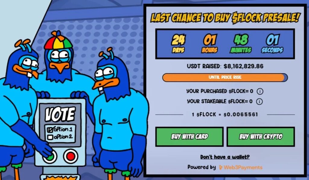 The Flockerz presale ended on January 22, 2025, while the deadline to acquire $FLOCK at its DEX listing price set at $0.0066883 ran until 2 p.m. UTC on January 27, 2025.