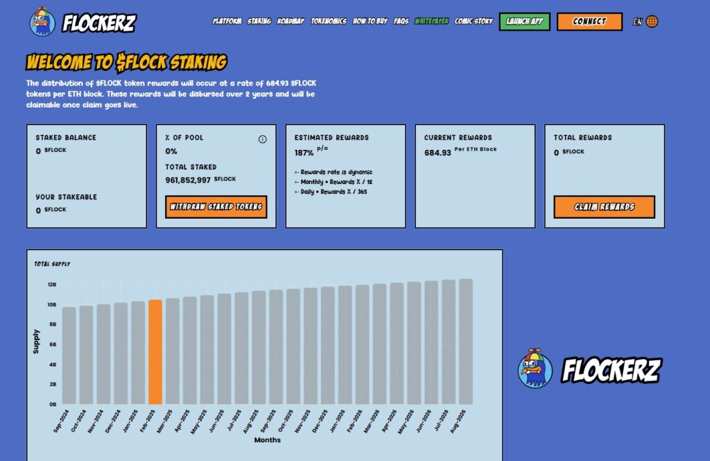 Users also can access the platform at flockerz.com while connecting their wallet to claim rewards by staking $FLOCK tokens (current Annual Percentage Yield reaches up to 250-300$).