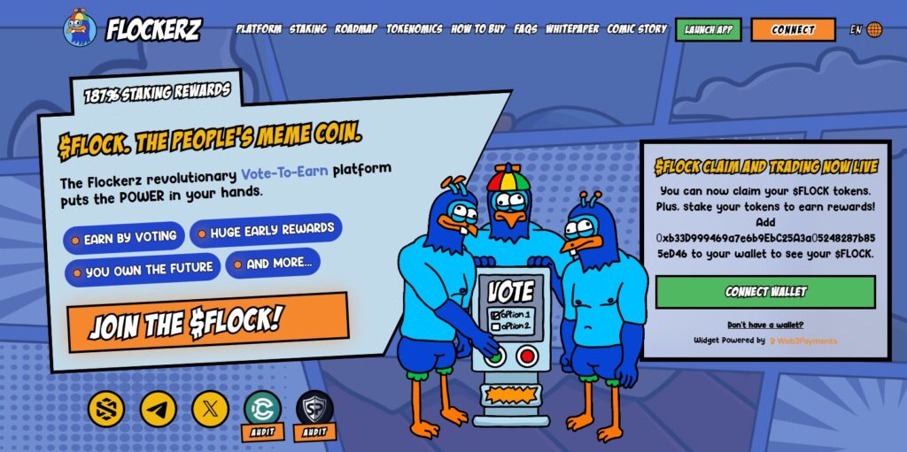 We continue our spree of memecoin reviews about the coins that were released in 2025. Flockerz ($FLOCK) offers a new concept that managed to accumulate more than $14 million during the presale stage by early 2025, showing it is not just a short-term phenomenon. What makes Flockerz different? They offer the “Vote-to-Earn” (V2E) model that combines community control with real rewards. Constructed on Ethereum as an ERC-20 token, Flockerz lets holders actively influence the project’s future and receive tokens for further transactions.
